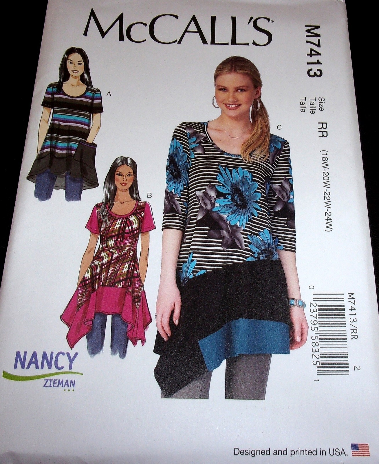 Mccall S Nancy Zieman Pattern M7413 Pullover Tunic Top W Shaped Hem 18w 24w Ff Ebay