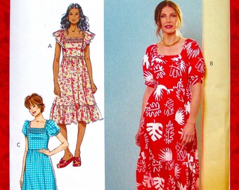 Butterick Ladies Easy Sewing Pattern 6448 Fit Flare Empire Waist Dresses Amazon Co Uk Home Kitchen